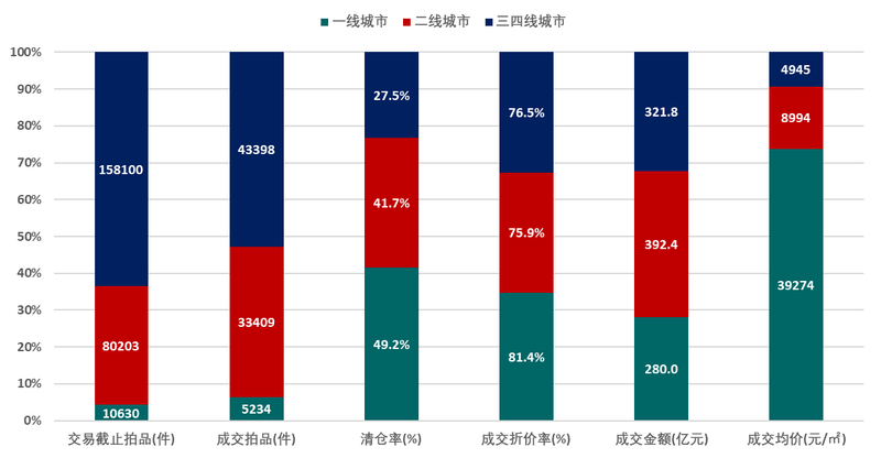 2025年前三季度各能级城市法拍住宅成交结构数据。 来源:CREIS 中指数据二手房版